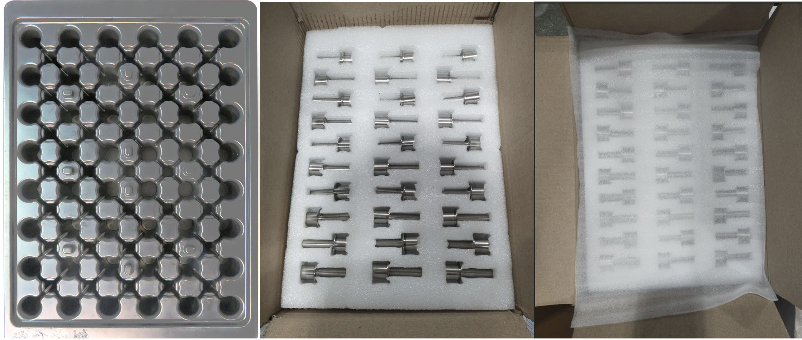 - 6. Tray Packing : For the critical parts, we use tray which fulfill purpose of individual pacaking. This protects surface of parts and make parts easy to handle.